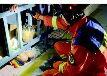 本报7月7日讯(记者 马媛媛)近日,昌乐县消防救援大队接到报警称,昌乐县宝都街道一小区西南角,一女童头部被卡栏杆内,急需救援。昌乐县消防救援大队宝城消防救援站立即赶往现场处置。