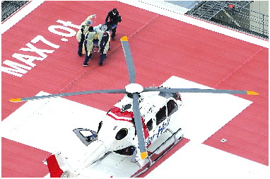 7月8日,安倍晋三由医用直升机转运至奈良县一家医院。 新华社/共同社