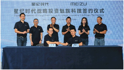 ◥星纪时代和魅族双方代表签约及见证大合影。