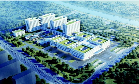济宁市公共卫生中医医疗中心(济宁市中医院新院区)鸟瞰图。