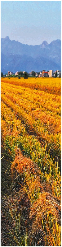 稻子一片一片安然倒下,割谷的人用稻叶随手一挽,成了稻把,在田里码放整齐。黄昏时分,晚霞从天光中洒下来,铺在还没有收割的稻田上,有一层迷幻般的油画色彩。这乡野里一季一季的稻田里,也留存着祖先们劳动的影子。