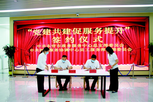 为强化油地“一盘棋、一家人、一条心”理念,近日,东营市政务服务中心党总支与胜利油田西城服务协调中心员工服务部党支部举行“党建共建促服务提升”签约仪式。活动中,双方到油田优良传统教育展厅回顾了石油人战天斗地的光荣历程和光辉岁月,在胜建便民服务大厅体验了“星级标准化大厅”的温馨环境和暖心服务。下一步,双方将坚持党建引领,强化融合协作,打通教育学习与业务交流通道,探索党建、业务、服务融合发展新实践,持续推动便民服务提质增效,让党建共建底色更红、让便民服务措施更暖心。