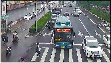 看到这种情况,张滨赶紧将手伸出窗外,示意左后方来车注意避让。一辆疾驰的白色私家车在张滨的手势和疾吼下,停在了孩子的面前。从监控录像上看,私家车紧急停车的位置距离孩童也就“一步之遥”,如果再往前,后果将不堪设想。