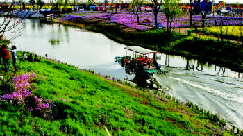 马伟所说的花海彩田景区是牛楼小镇田园综合体重点项目之一。2018年,牛楼社区党委邀请牛楼、李楼、大雨住、马桥等6个村的村集体和村民以资金、土地入股合伙,依托泗河建起了占地2000余亩,集花草种植、休闲观看、娱乐为一体的乡村旅游景区。