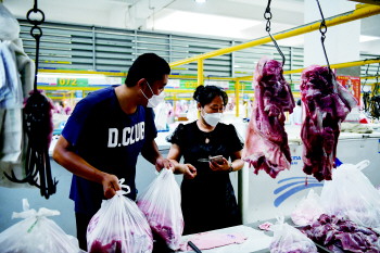 11日下午4点半,记者来到了十甲农贸市场,商贩刘先生说,现在顾客基本上问一下价格就走。之前每天进5头猪,今现在进2头还卖不完,收入也减少了近4成。刘先生说,他有冷库,卖不完还有地方存放,斜对面的两个肉铺一个直接不干了,另一个不定时营业。没有冷库,肉也放不住,卖又不好卖,就不愿意营业了。