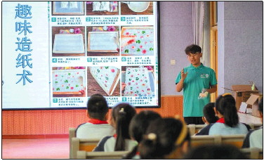 大学生志愿者利用假期为孩子们讲解科普知识。