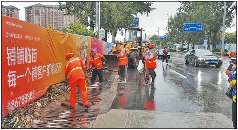 坚持“下雨就是命令”的原则,要求所有一线工作人员在降雨开始时就严阵以待,及时疏通下水口,确保排水顺畅。要求各管理人员根据以往经验,对路况较差、排水不畅的路段,调集保洁人员和机械作业车辆,集中进行排水作业。同时,成立机动性清理队伍,对雨后路面积存垃圾、淤泥及砂石及时清理,方便路人出行。