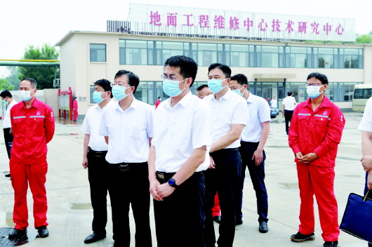 调研过程中,牛栓文多次阐释,推动高质量发展、建设领先企业、打造百年胜利,必须坚定走技术立企兴企强企之路,突出强化创新驱动,集中资源攻克关键技术,不断增强油田科技创新引领支撑能力。