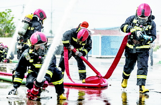 连日来,胜利油田应急救援中心员工身着40斤个人防护装备,毅然坚守训练场,开展枪炮协同进攻操的训练。应急指战员们通过开展单兵攻坚穿越操、精准射水灭火操、防汛排涝拉动演练、灭火救援实战拉动等全员岗位练兵工作,切实提升队伍实战化训练效能,确保随时“拉得出、冲得上、打得赢”,为保障油田生产生活平安有序提供强力保障。