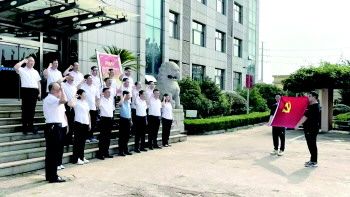 7月1日,岚山管理处组织机关在岗党员开展“重温入党誓词 坚定理想信念”主题党日活动。