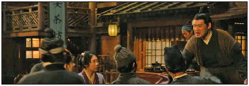 《梦华录》中百姓们热议“帽妖”。 视频截图