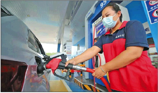 7月26日,山东省临沂市郯城县一家加油站工作人员为车辆加油。 新华社发