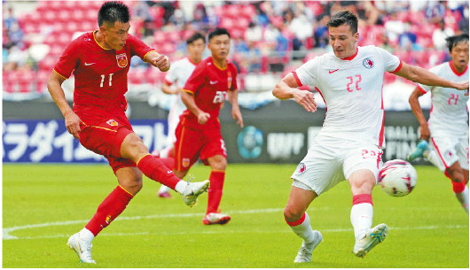 第67分钟,中国香港队连续解围失误,禁区内的谭龙得球后没有调整,而是直接一脚抽射,皮球直入网窝。凭借这粒进球,谭龙以34岁117天的年龄,成为国足A级赛事最年长进球者。