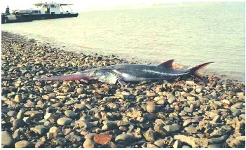 1993年葛洲坝下发现的白鲟,这可能是留存于世最清晰的白鲟照片。