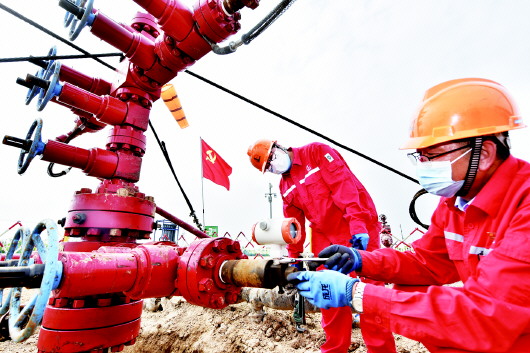 近日,胜利油田河口采油管理四区注采404站党员突击队,克服高温天气等不利影响,在渤南油田5号台义178—X15井组,检查压驱注水新技术施工前的准备工作。据了解,特低渗油藏密度大,常规注水补能模式难以解决开发难题。为此,河口采油厂自2020年以来,先后在渤南、大北等油田实施压驱注水新技术获得成功,目前已实施压驱注水100井次,累计增油3.9万吨。其中,义7-2井组是胜利油田第一口压驱注水开发单元,日产油从5.1吨提高到11吨,该井组的成功实践为低渗透油藏蹚出了一条低成本、高效益的开发新路。