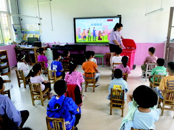 垃圾分类教育 为增强幼儿爱护环境的意识,日前,沂源县悦庄镇沂河幼儿园开展了垃圾分类主题教育活动。 (张洪红)