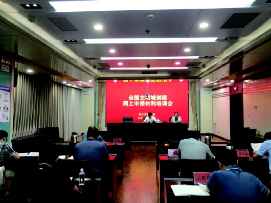 7月15日上午,枣庄市教育局在515会议室召开全国文明城创建网上申报材料培训会。市教育局副局长王明成出席并讲话,各科室创城责任人参加会议。