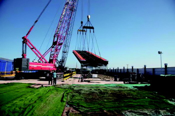 日前,记者在地铁8号线支线大沽河博物馆站施工现场看到,施工人员在大型起吊设备的帮助下,将长约26米,重28.5吨的首幅地下连续墙钢筋笼缓缓立起,吊装入槽,这标志着8号线支线主体围护结构施工正式拉开帷幕,为地下全面施工作业奠定了基础。据悉,大沽河博物馆站全长218米,为明挖两层岛式车站,支护结构采用地下连续墙加内支撑形式。地下连续墙厚800毫米,共计84幅。