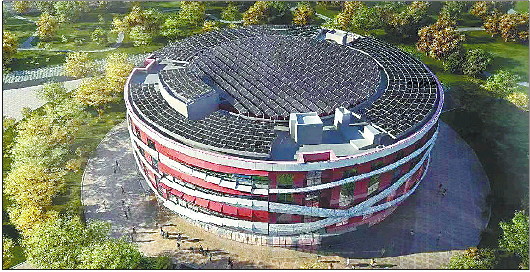 晶科能源为山东菏泽的“花舞世界文化艺术中心”提供仿铝板保温复合光伏幕墙。 资料图
