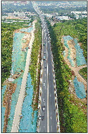 为体现该项目生态示范路的理念,二仙大桥也对老桥进行了保留和利用。目前新建段正在进行桥梁下部结构施工,后期根据工程进展,采取桥梁拼宽的方式,进行道路右幅的施工。