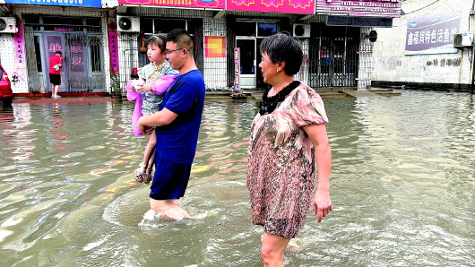 8月8日7时21分,烟台市消防救援支队龙口大队指挥中心接到报警称,龙港街道邹刘村出现积水内涝,水已到达膝盖位置。大队立即调派救援站出动远程供水编队4车16人赶赴现场排涝。消防救援人员到场后发现,现场因突降暴雨,路面严重积水,街上行人纷纷涉水行走,车辆前行受阻。其中,一名老人手抱儿童在路边犹豫徘徊,消防救援人员上前询问得知,孩子着急上幼儿园且老人腿脚不便,救援人员立即接过老人手中儿童,并协助老人转移至安全地点。经过4个多小时的努力,排涝工作基本完毕,积水面已下降到可正常行走范围。 记者 李雯娅 通讯员 姜思源 于宝琦 摄影报道