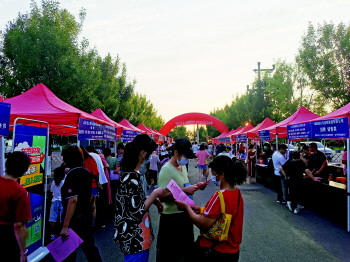 在8月5日济宁市人社局主办的“济宁籍高校毕业生家乡名企行”活动中,30余名来自省内外的济宁籍高校毕业生当晚也参加了在主城区文化广场举办的人才夜市。这场由古槐街道人社所积极筹备的人才夜市虽然规模不大,但仍有71家企业带来了千余个岗位,其中不乏龙贵集团等本土知名企业,吸引了这些高校毕业生的关注,对济宁籍人才的“归巢”起到了积极作用。