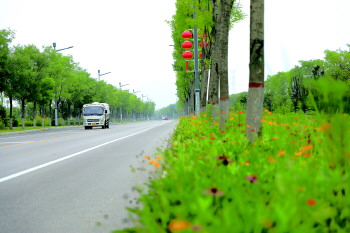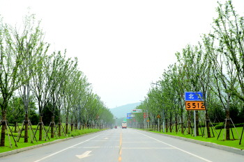 杏花烟村段则以胸径22—23厘米的榉树为主,并种植花期较长的丛生紫薇,令花与树的组合融入村落中,勾勒人与自然和谐相处、其乐融融的生态画卷。雁过田园段展现的是悠闲美丽的田园风光:经过翻整重新种植后的草坪,点缀以粉的、红的花,并与身后广阔的农田融为一体,一股清新感油然而生。接下来的湖山入圣段全程3公里,以胸径22-25厘米、高13米的银杏树为主,共700余颗。“银杏树是中国传统的独有树种,我们希望借此彰显树与人的高贵品格。”