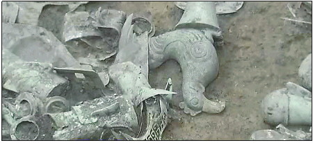 赵昊介绍说:“我们在原来出现的凤鸟柱头旁边,发现了一个新的器物,这件器物体形不大,但是非常有趣,同时也是非常重要的一件器物。”