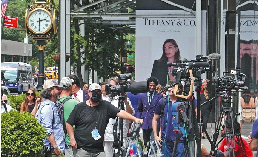 10日,许多新闻记者聚集在美国纽约特朗普大厦外。 据中新网