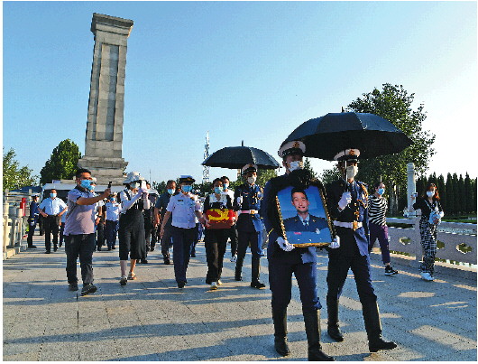 飞越1500多公里,在重庆因救火英勇牺牲的山东籍烈士万惠文“回家”了!8月17日14时07分,万惠文烈士的骨灰运抵济南遥墙国际机场,东营消防救援支队以鸣笛方式护送英雄回老家广饶。一路上,家乡人民手持菊花寄哀思,迎接万惠文烈士魂归故里。8月18日上午,万惠文烈士安葬仪式将在广饶县烈士陵园举行。 记者 任小杰 摄