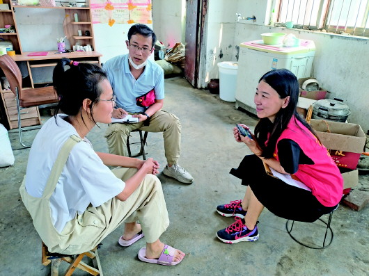 本报记者与阳光志愿者采访阳光学子(左一)。