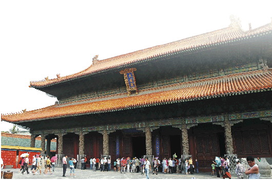 距聊城40里的堂邑文庙大成殿,经陈从周鉴定,为明构,清乾隆时曾重修,“屋脊琉璃极细致工整,犹为明时旧物。仪门情况亦仿佛似之,梁架未见,盖为顶棚所掩也。其前古柏虬枝夭矫堪入画,碑楼仅柱为明时物。”