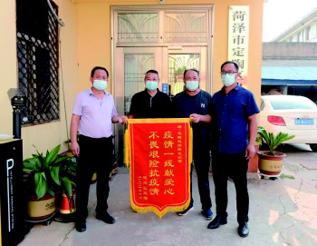 8月10日,定陶区滨河街道办事处建华社区党支部书记郭祥金将一面“疫情一线献爱心,不畏艰险抗疫情”的锦旗交给区自来水公司经理蔡全福手中,对区自来水公司在疫情防控期间给予的爱心帮助表示衷心的感谢。