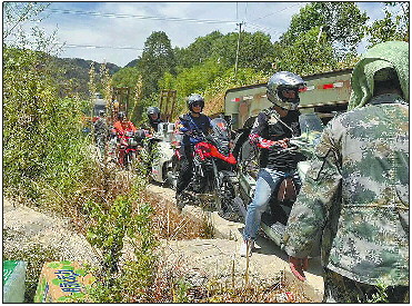 冒着高温,摩托车队在山间小路行驶。 受访者供图