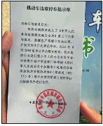郑州城管张贴《机动车违章停车提示单》。 据郑州市城市管理局微信公众号