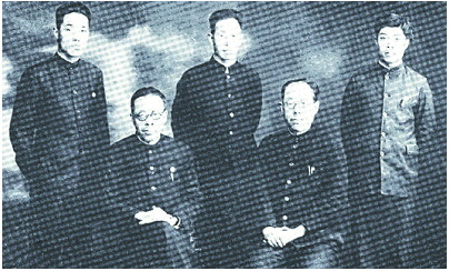 ▲水族馆开馆初期全体职员合影。前排左为宋春舫,前排右为蒋丙然先生,后排中为李方琮先生,后排左为刘靖国先生,后排右为朱祖佑先生。