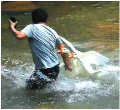 大白鹅的攻击手段有很多种,杀伤力最轻的就是扇动翅膀驱赶,行不通的话,它们会采取第二作战方针,低空飞翔并通过脚蹼来踢打入侵者。