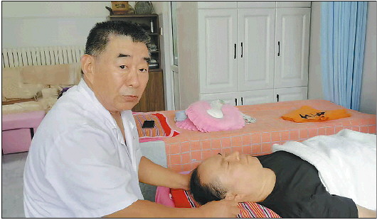 孟庆臣正在给患者做推拿。