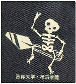 不久前,我来到吉林大学考古学院山西夏县田野考古实践教学基地,参加国家文物局田野考古实践训练班。报到当天领取发掘物资,我印象最深的就是印在工具包和马甲上的标志(图①):一个骷髅卡通形象坐在手铲上,一只手搁在腿畔,一只手举过头顶,比出一个胜利的“V”。手铲向上微斜,如同一艘起锚待航的小船。