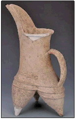 朱超兄去年主持发掘的滕州岗上遗址入选“全国十大考古发现”,现在可是大名鼎鼎了。他设计的整个图案(图③)取形源于史前陶鬶(图④)。对考古感兴趣的朋友都知道,陶鬶是龙山文化极具代表性的器物,以其独特的仿生造型和合理的构造,映射出当时先民在日常生活和宗教信仰方面的需要。这种器型主要流行于山东地区,而这片土地又是崇尚鸟图腾的东夷人的故土。东夷人崇尚鸟图腾,把自己喜爱的鬶做成各种各样的禽鸟形象,有的似展翅欲飞的鸟,有的似仰首高歌的雄鸡,造型独特,姿态生动,是很有地方特色的典型器物。再看朱超兄的设计,顶部为斜向的鬶流,还是“山”字的变体。上联颈部,下接器身的半环状鋬,按实物表现成绞索状。颈部与下面正视的两袋足组成一个繁体“东”字。袋足上部装饰凸弦纹。在标志中则演化成了“考古”二字。朱超兄志研山东新石器时代考古,以陶鬶的形,再融合进山东考古四字,非有对此器物的长期摩挲而不可为。这个标志如同一只伸着长喙的鸟,正引吭高歌,待展翅九霄。底部丰满的袋足稳定支撑,又如海岱这片热土,厚重博大、底蕴深厚。
