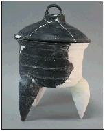再说说吕凯兄的设计。吕凯兄这些年也是成果颇丰,主持发掘的琅琊台遗址颇受世人瞩目。他设计的这个作品(图⑤),上面的火焰纹也是“山”字的变形,火焰纹的源头是大汶口时期大口尊上的“日火山”刻符。这种图案被认为是汉字起源的源头之一。在山东的莒县、诸城、宁阳、莱阳等地都曾出土过同类刻符。往下图案主体是三足盖鼎(图⑥),这种龙山时期的代表器物,多用细泥烧制成黑陶质。盖设计成覆碗形盖,尚有弧形器鼻(捉手)。鼎的腹部饰几周凸弦纹,平底。最有意思的是它的三足,因足上端有对称的小孔,双孔之间有的还饰一竖条附加的堆纹,形似鬼脸,俗称“鬼脸足”。其实大多数考古人都认为这种足很像鸟头,对称的小孔如同鸟目,尖底如同鸟喙,故称其为“鸟头形足”。吕凯兄巧妙地把手铲图案置于三足鼎中间,手铲把当鼎一足,二者再组成一个繁体“东”字。发掘工具与出土文物组合在一起,这种巧妙,宛若天成。我们考古人不就是在享受这种发掘的过程吗?外面的方形边框,让吕凯兄解释出来那就更棒了。方形代表城址,四个豁口代表四门,四门打开代表包容并蓄与开放。方形外框还代表探方,田野是考古事业的基础。整体的色调是青色,是因为东方属青,泛指海岱地区,也就是现在山东地区。