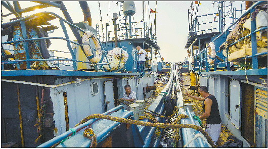 黄渤海为期四个月的伏季休渔期将于9月1日中午12时正式结束。开海前一天,日照的渔民们加紧“秣马厉兵”。