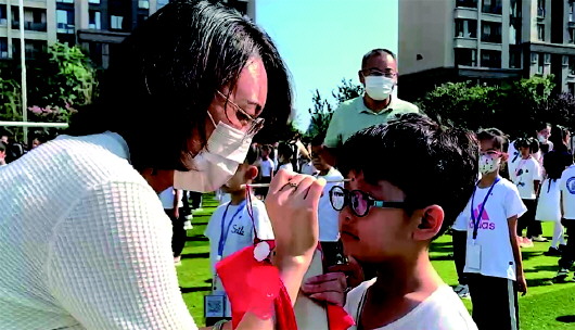 一年级新生集体进行了庄重的古代童蒙入学仪式——开笔礼。学校领导和班主任老师们为一年级新生点上红痣,为学生开启指挥,同时带领新生共同书写简单而意义深远的“人”字,感受传统文化,弘扬中华民族尊师重道的传统美德。
