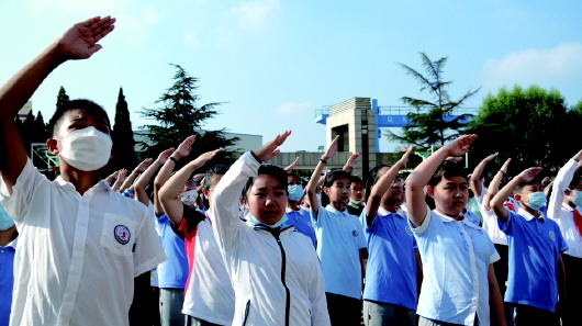 本报讯(通讯员 姜雨岑) 9月1日上午在庄严的国歌声中,威海市实验中学开学第一课正式开始。