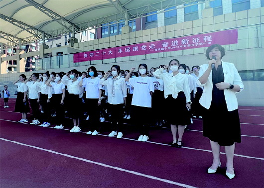 本报讯(通讯员 王祥云) 为进一步加强学生的爱国主义教育,增强师生责任感和使命感,9月1日,海南路小学举行“喜迎二十大 永远跟党走 奋进新征程”为主题的开学典礼。