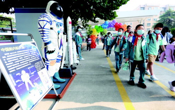 “学校组织此次活动是为了激发同学们新学期的学习激情,树立‘敢为人先,不断求索’的精神。”据张店区铁路小学老师张健介绍,他们希望通过参观天文实物展览和听取讲解,拉近科研和科普的距离,更加激发了学生们的航天梦,中国梦。