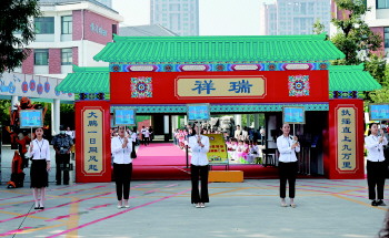 来到校门口,映入眼帘的对联“大鹏一日同风起,扶摇直上九万里”,寄托着学校对孩子们的殷切期盼,校门口的机器人、无人机、小提琴演奏以及社团表演等体现着现代艺术与科技的融合。