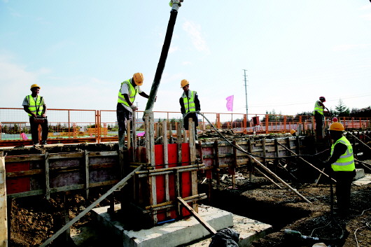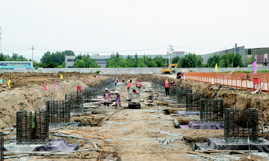 7月份以来,滕州市进入连续降雨阶段,多次出现100毫米以上降水。项目部采取场内钢板铺路、降水清淤、人工清洗运土车辆等措施,在运土间隙时间抢修场内临时道路6000余米,不仅没有耽误挖槽运土,还保证了场外道路不受污染。在诸多不利的条件下,每天使用大型施工机械17台,运土车进出3000班次,运出土方5万立方米,顺利完成基槽开挖。