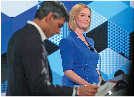 特拉斯(右)在英国特伦特河畔斯托克参加电视辩论的资料照片(7月25日摄)。 新华社发
