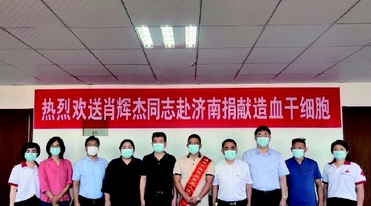 肖辉杰是环翠区邮政公司的一名优秀营业经理,平日爱岗敬业,屡创佳绩,多次获得先进个人称号,深受领导和同志们的赞同。今年6月8日,接到红十字会配型成功的电话后,他个人毫不犹豫的表示同意捐献,并立即与家人和单位领导进行了沟通,争取家人和单位的支持后,肖辉杰的捐献意愿更加坚定,“我是一名预备党员,能够把入党时的铮铮誓言转化为挽救生命、奉献社会的实际行动,我感到很高兴,通过自己的捐献能够为患者家庭重新带来生活的希望,为社会传递一份正能量,是一件非常有意义的事情”。